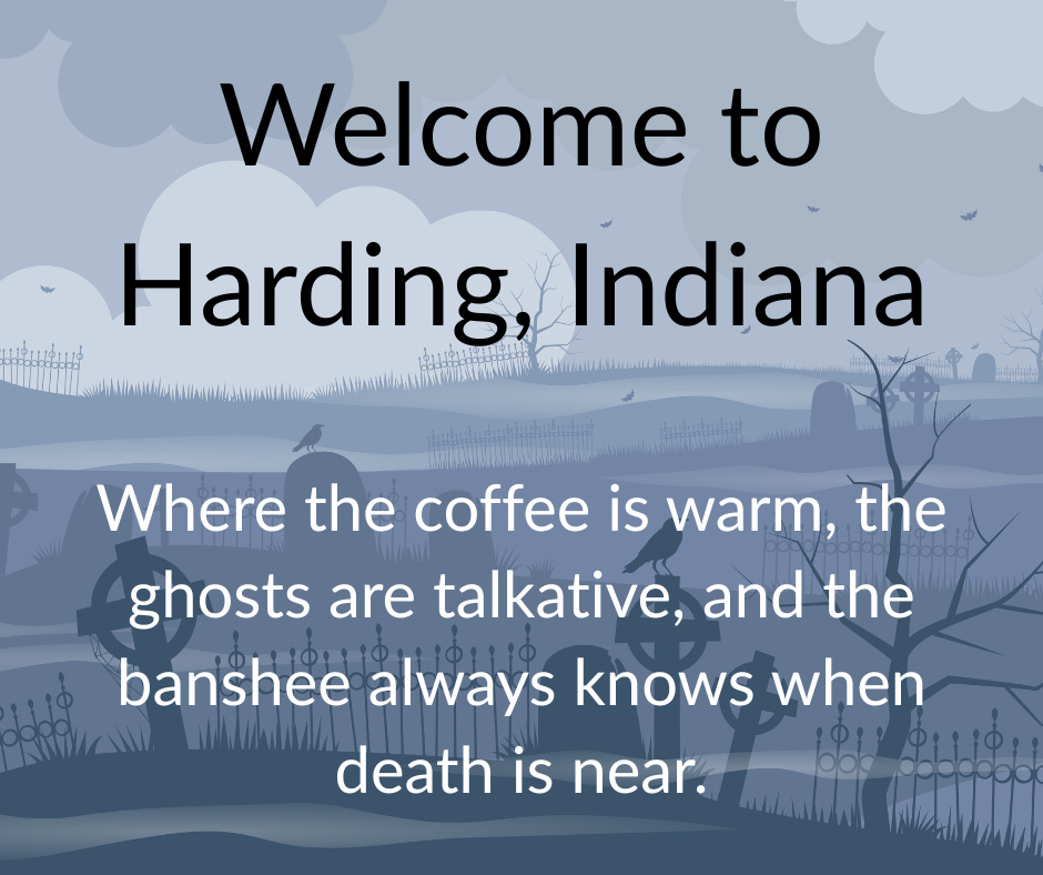 Welcome to Harding, Indiana, where the coffee’s warm, the ghosts are talkative, and the banshee always knows when death is near.2
